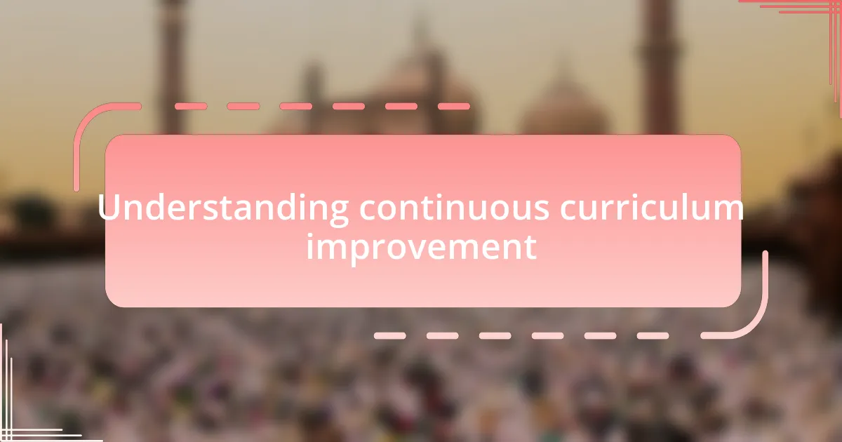 Continuous curriculum improvement is an ongoing process aimed at enhancing educational programs to meet the needs of students and society. I remember a time when my own understanding of a religious text shifted dramatically just because we re-evaluated the curriculum we were using. It reinforced for me how crucial it is to adapt our approaches; if I can change my perspective, surely the same could happen for our students.